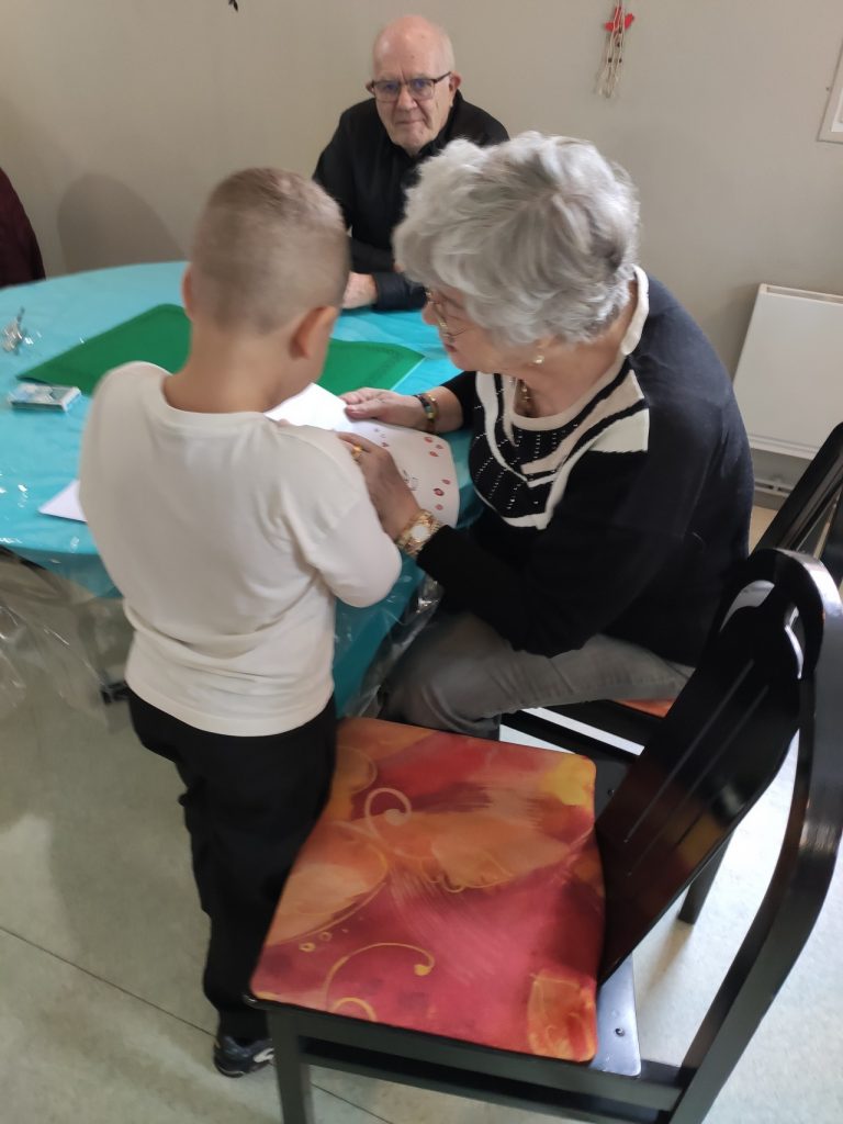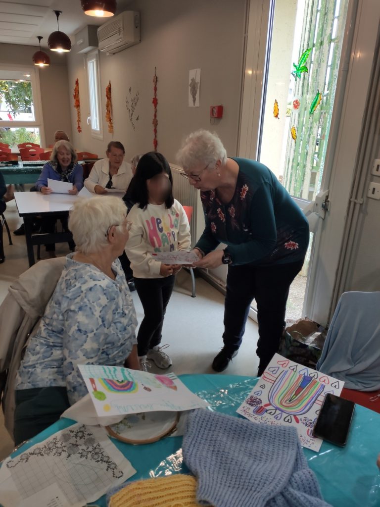 Dans le cadre de la semaine bleue organisée par la ville de Lutterbach, la classe de CP de Mme Dumas s’est rendue le 9 octobre à la résidence Châteaubriand pour un moment de convivialité autour de chants et poésie. Les enfants avaient également préparé des dessins qu’ils ont pu offrir aux résidents.
